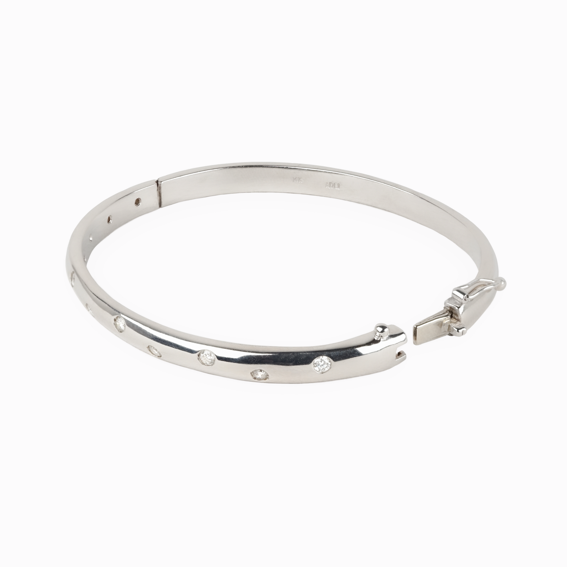 Subtle motion, cast in gold. The Drift Bracelet is sculpted from solid 14k white gold; substantial in feel, quietly indulgent in finish. Scattered natural diamonds add a soft shimmer, like glints of light across still water. It wears like a whisper: steady, grounded, and built to last.