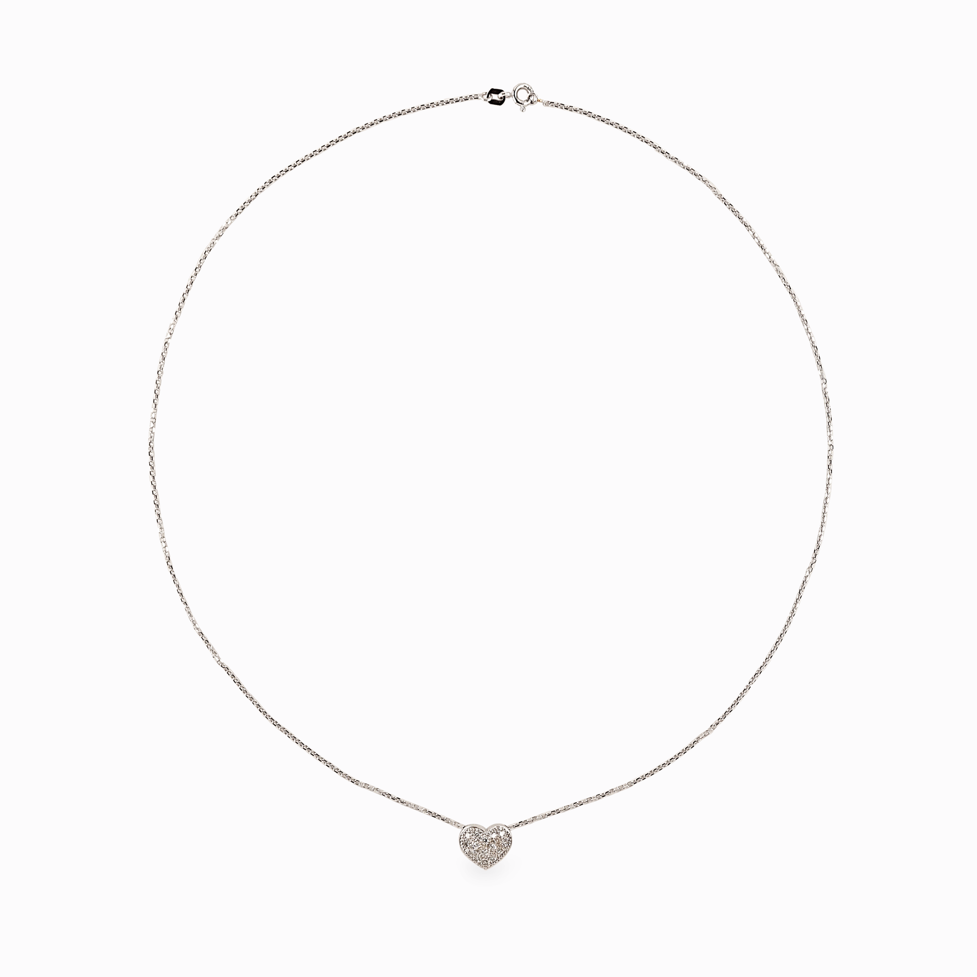 A heart, but not the obvious kind. Soft Launch pairs the quiet luster of 18k white gold with a flush of natural diamonds, set into a rounded silhouette that glides along the chain with gentle ease. It catches the light without chasing it — an easy, glimmering piece that sits close without saying too much. A whisper of sentiment, with the softest kind of start.