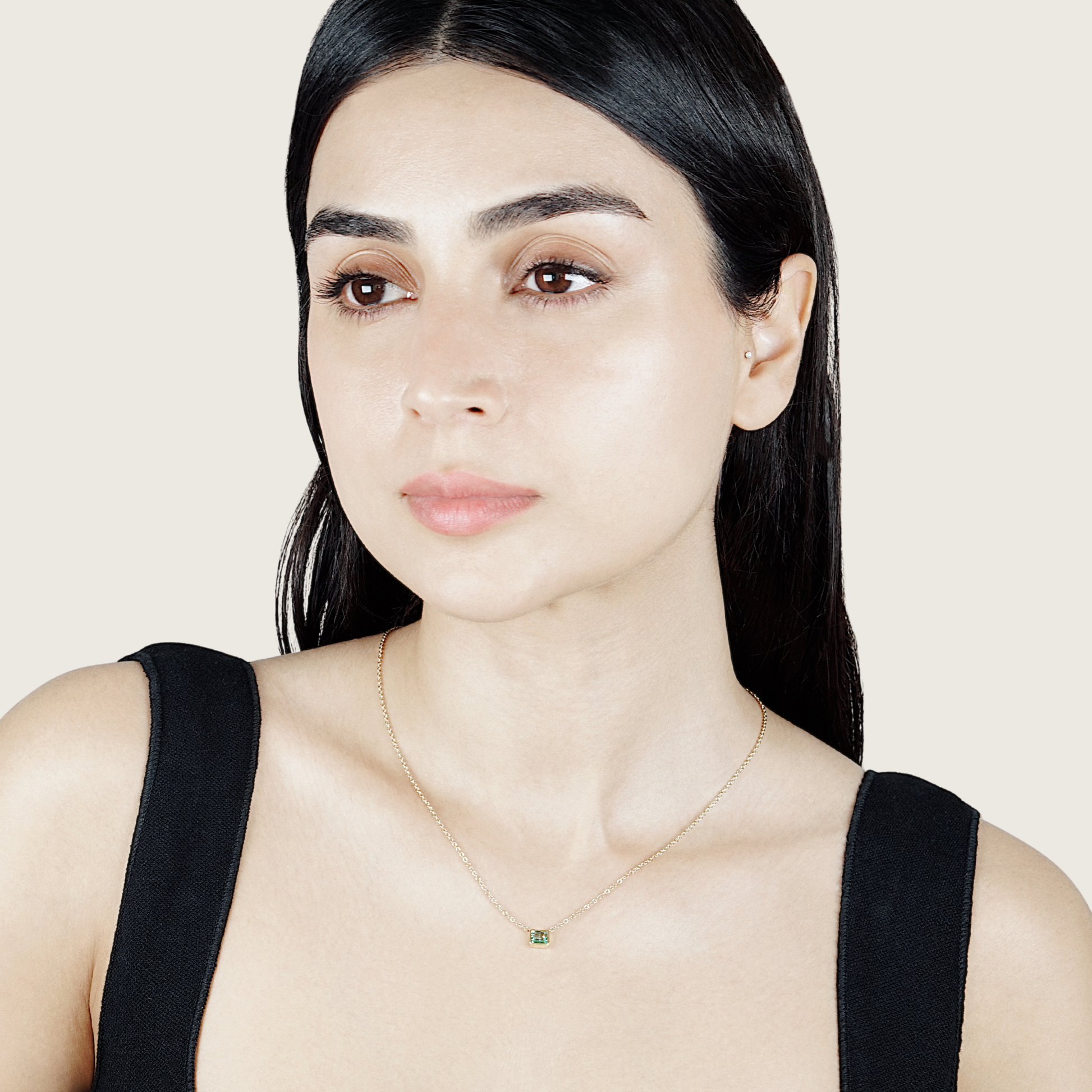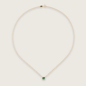 A study in clarity and restraint, the Emerald Cut Necklace places a single emerald-cut emerald at the center of a fine gold chain. The stone’s clean geometry contrasts with its deep, shifting green — at once modern and elemental. Balanced between precision and presence, it’s a quiet statement piece that carries its weight in understatement.